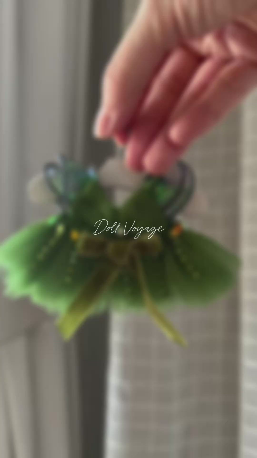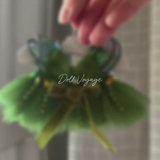 Elowyn is a dreamy couture doll dress inspired by enchanted forests and soft fantasy elegance.