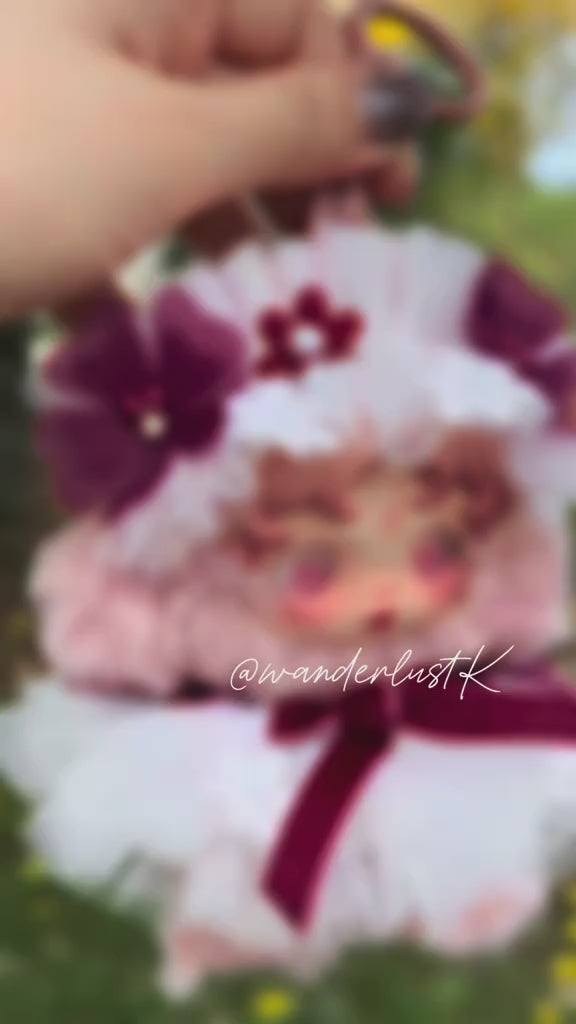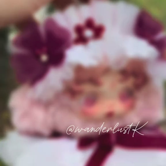Handmade with soft tulle, floral embellishments, and a luxe magenta velvet bow — perfect for kawaii lovers and pastel-style collections.
